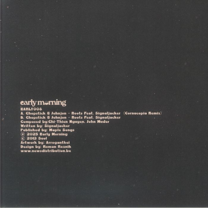Early Morning, established as a platform for creative reinvention in electronic music, continues to evolve with a release that both reflects and expands its core vision. Cornucopia's interpretation of Roots is an immersive journey spanning over seven minutes, maintaining the emotional heart of the original while reimagining its sonic landscape with precision and depth.