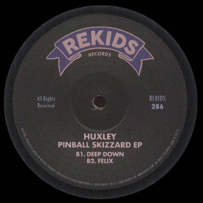 Huxley opens the ‘Pinball Skizzard’ EP with ‘Pinball’, setting the tone with a hefty House groove, anchored by cavernous bass, and brought to life by old-school vocal touches and bright sax motifs that inject warmth and energy into the mix. ‘Heaven’ follows with a buoyant rhythm, pairing glowing chords and twinkling melodic details with deep, dubby low-end pressure designed to keep bodies locked in motion. ‘Deep Down’ shifts into a slinkier back-room groove, rich in atmosphere and soulful vocal fragments that underline its timeless house feel. Closing track ‘Felix’ rounds things out with a percussive roller built around vocal snippets and subtle tribal accents, delivering a stripped-back but effective finale that fits neatly within the Rekids aesthetic.
