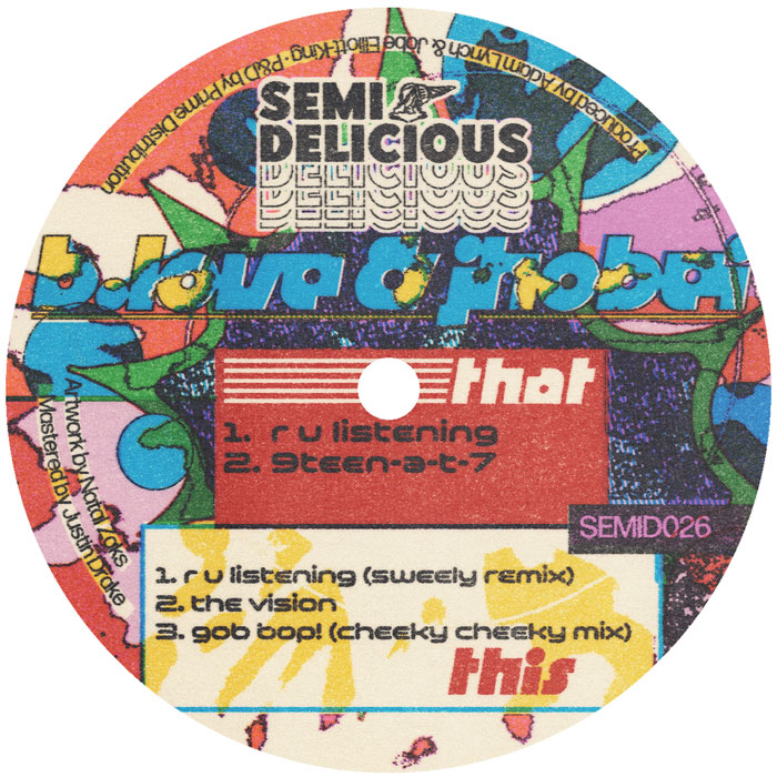 Demi Riquisimo's Semi Delicious label has been one of the success stories of the first half of this decade, with the popular producer offering up some seriously good fare that frequently tiptoes the line between 21st century dancefloor tropes and lashings of 90s nostalgia. Here the label delivers more must-check goodness via a collaboration between Bizarre Trax co-founders Jhobei and B.Love. The headline attraction is undoubtedly 'R U Listening', a chunky, UK garage and tech-house influenced exercise in propulsive deep house sparkle that comes accompanied by a colourful, lighter touch interpretation by Sweely. Elsewhere, '9Teen-A-T-7' peppers a chunky deep house workout with mid-80s electrofunk synths, 'Vision' is a squelchy, nu-disco influenced workout, and 'Gob Bop (Cheeky Cheeky Mix)' sounds like a late 80s Euro-house record... only classier. Impressive stuff all told!