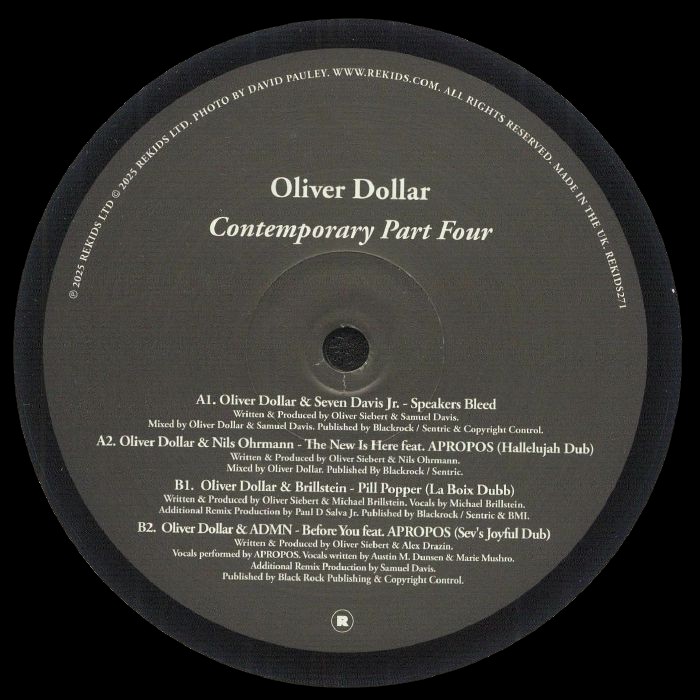 4 Track EP OF Deep House With Spoken Vocal & Tech Feel - Oliver Dollar presents part four of his Contemporary series on Rekids. The EP precedes his upcoming album on the label, enlisting Seven ‘Sev’ Davis Jr. and Nils Ohrmann, alongside dub reinterpretations by La Boix and Sev.