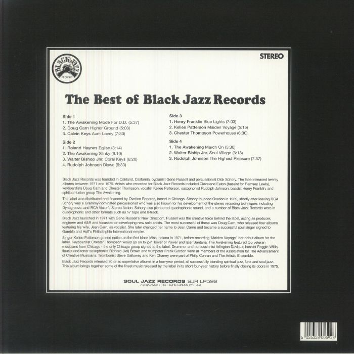 Similar to other independent jazz labels at the time including Strata-East Records and Tribe Records, Black Jazz focussed on a number of key artists, most of whom first established their career during this period, and all of whom are featured here.